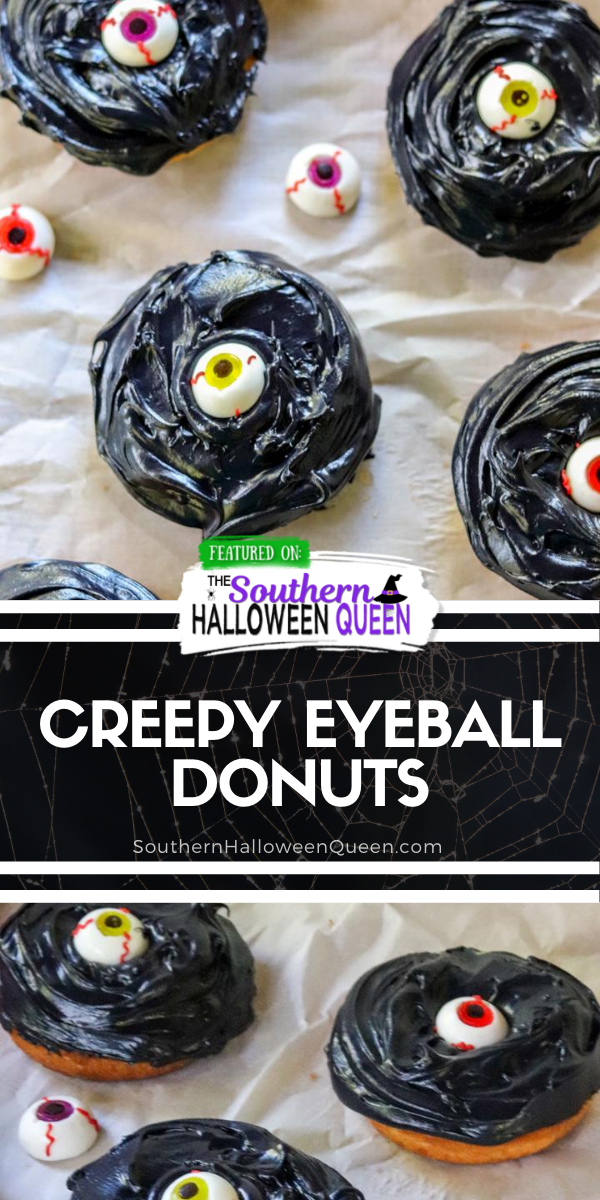The vanilla donuts have been been given a Halloween makeover and transformed into Creepy Eyeball Donuts that are sure to keep an eye on your party guests!